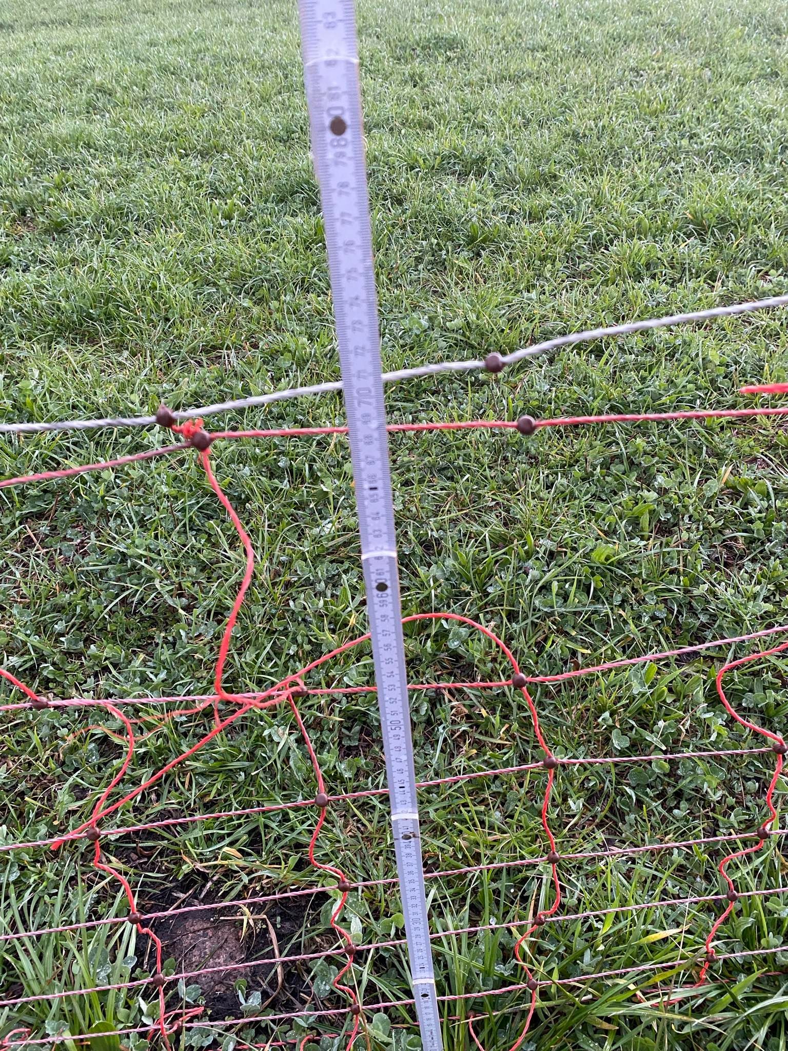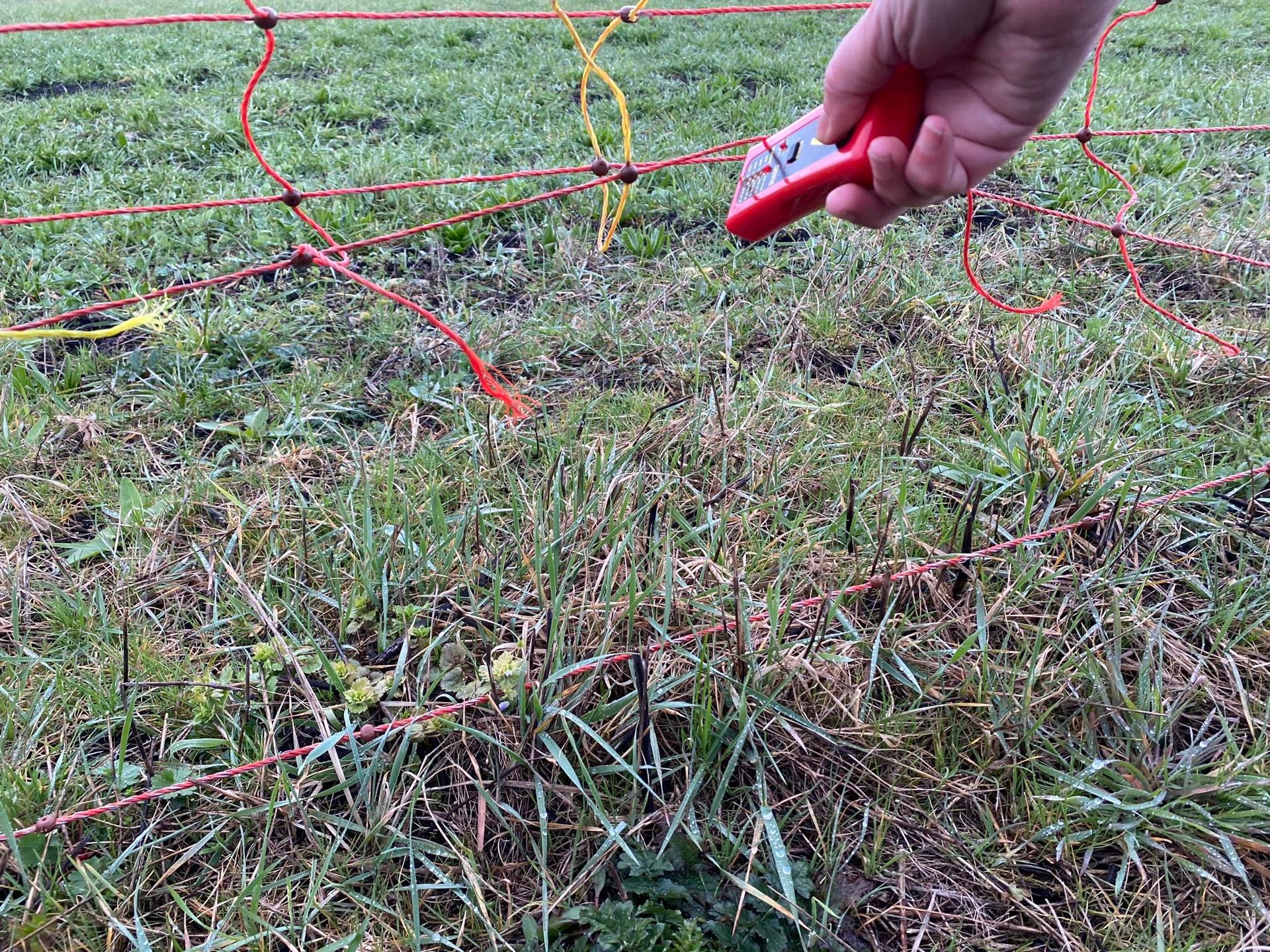 Mit einem einfachen Strommessgerät und Zollstock ausgerüstet, fiel uns auch bereits ohne Messung ins Auge, dass keineswegs neue Zaunnetze angeschafft wurden, sondern es sich bei den mobilen Zäunen immer noch um die alten, teilweise verschlissenen Zäune handelte, die wir bereits im März 2024 in Wilmersdorf (Angermünde) vorgefunden hatten.