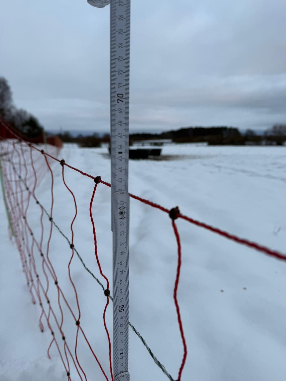Im März des Jahres 2024 mussten wir auf der Weide der Lehrschäferei Friedrichsfelde des Jens Kath in der Nähe des Bahnhofs Wilmersdorf (Angermünde) feststellen, dass der Herdenschutz der Schäferei nicht dem Mindeststandard des Landes Brandenburg entsprach, der eine Mindesthöhe von 90 cm für mobile Netzzäune verlangt.