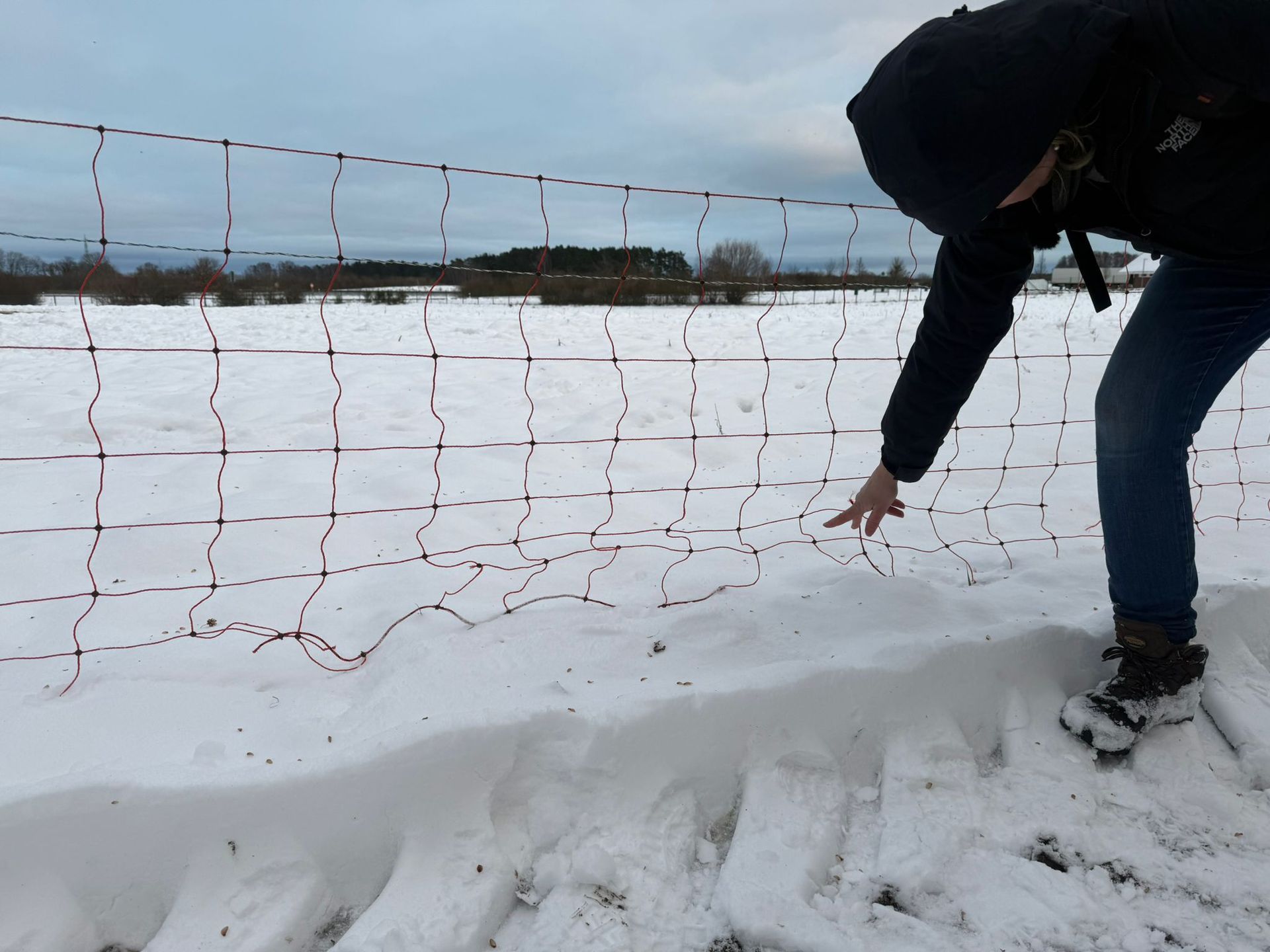 Im März des Jahres 2024 mussten wir auf der Weide der Lehrschäferei Friedrichsfelde des Jens Kath in der Nähe des Bahnhofs Wilmersdorf (Angermünde) feststellen, dass der Herdenschutz der Schäferei nicht dem Mindeststandard des Landes Brandenburg entsprach, der eine Mindesthöhe von 90 cm für mobile Netzzäune verlangt.